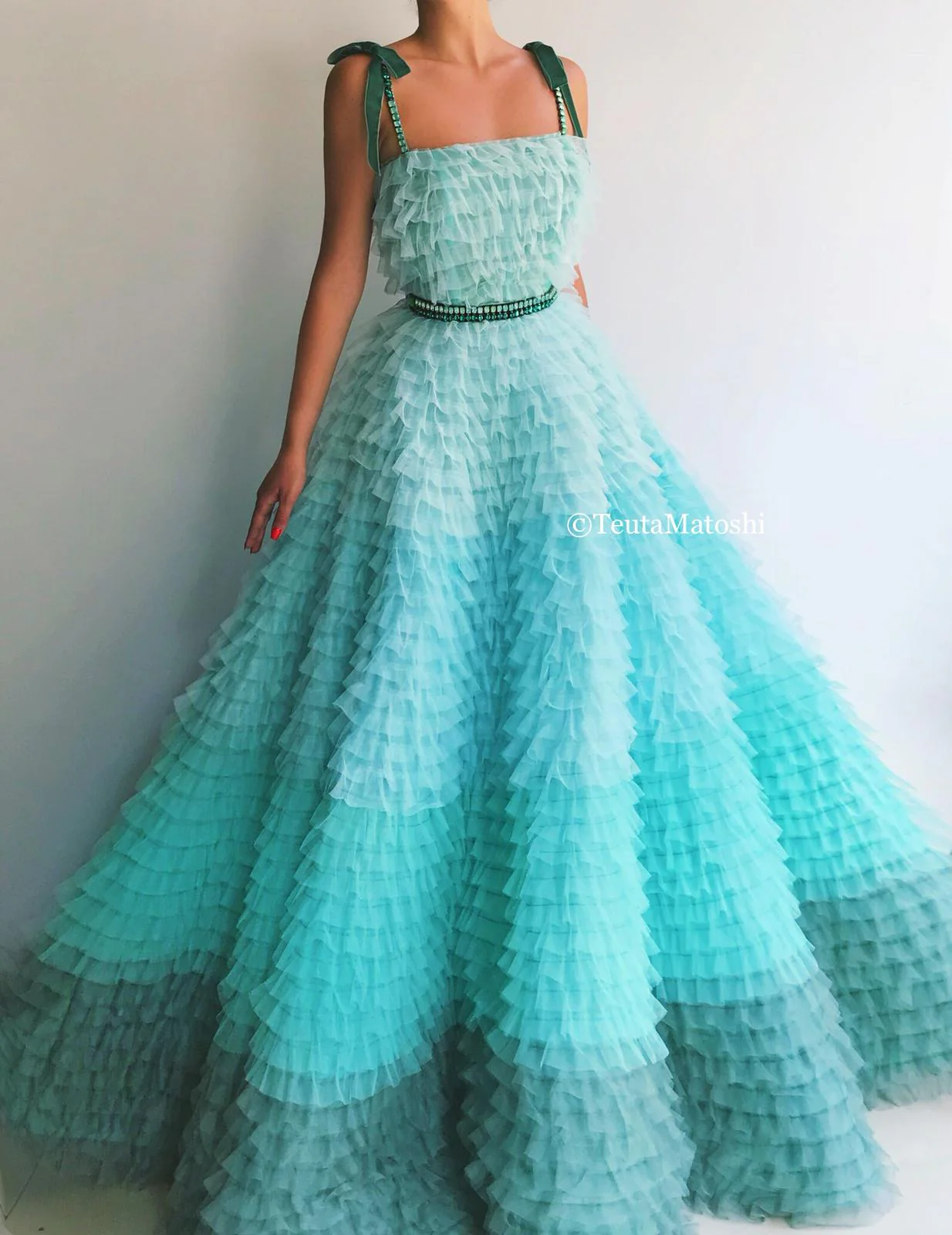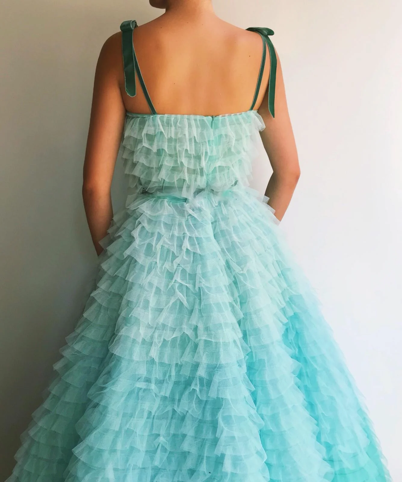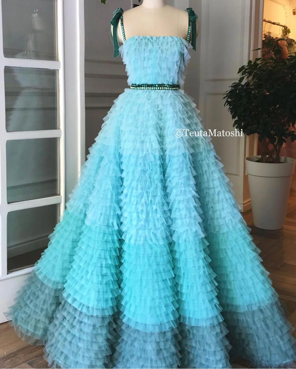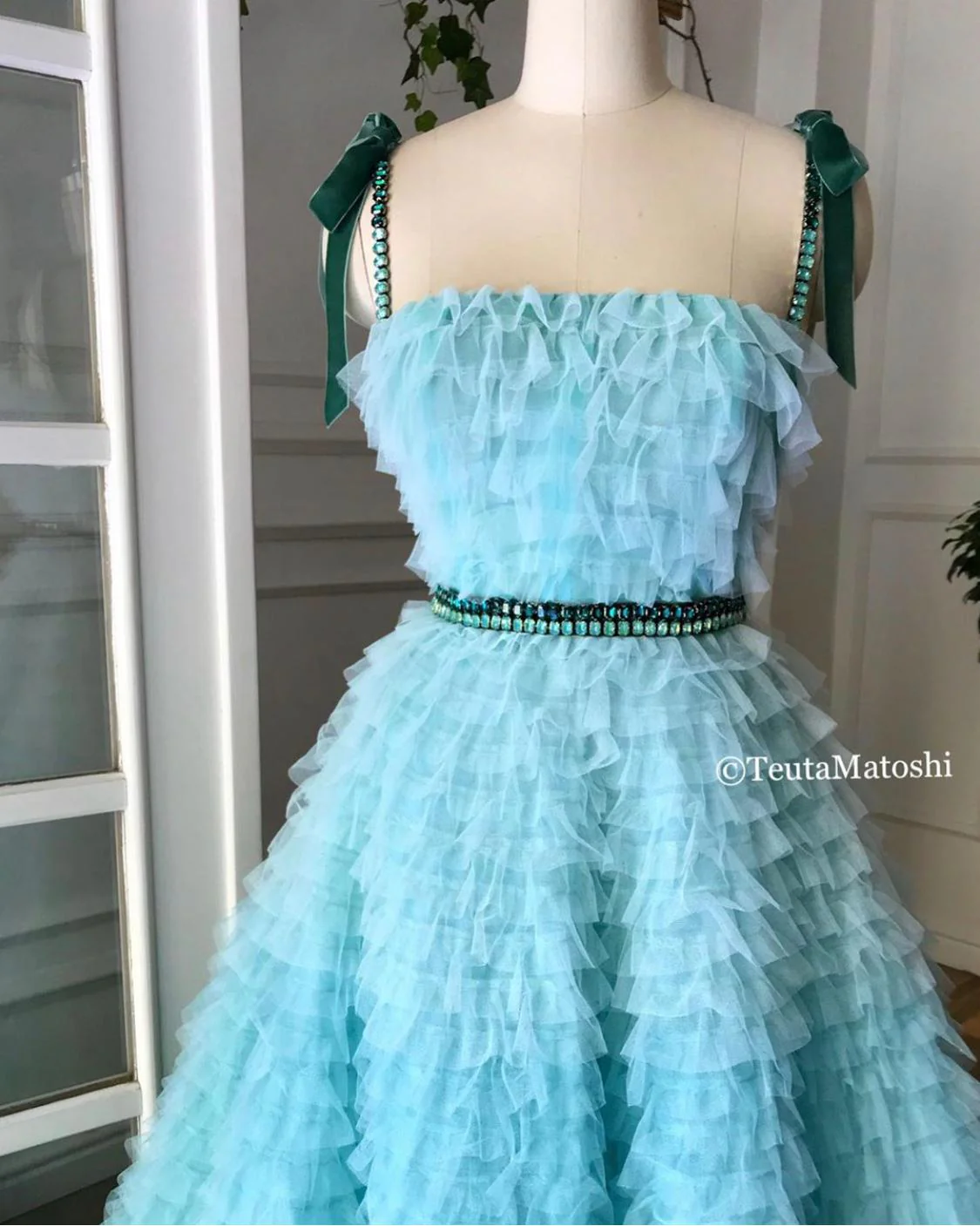- Embroidered crystals on waist, and shoulders beautifully captured with velvet ribbons