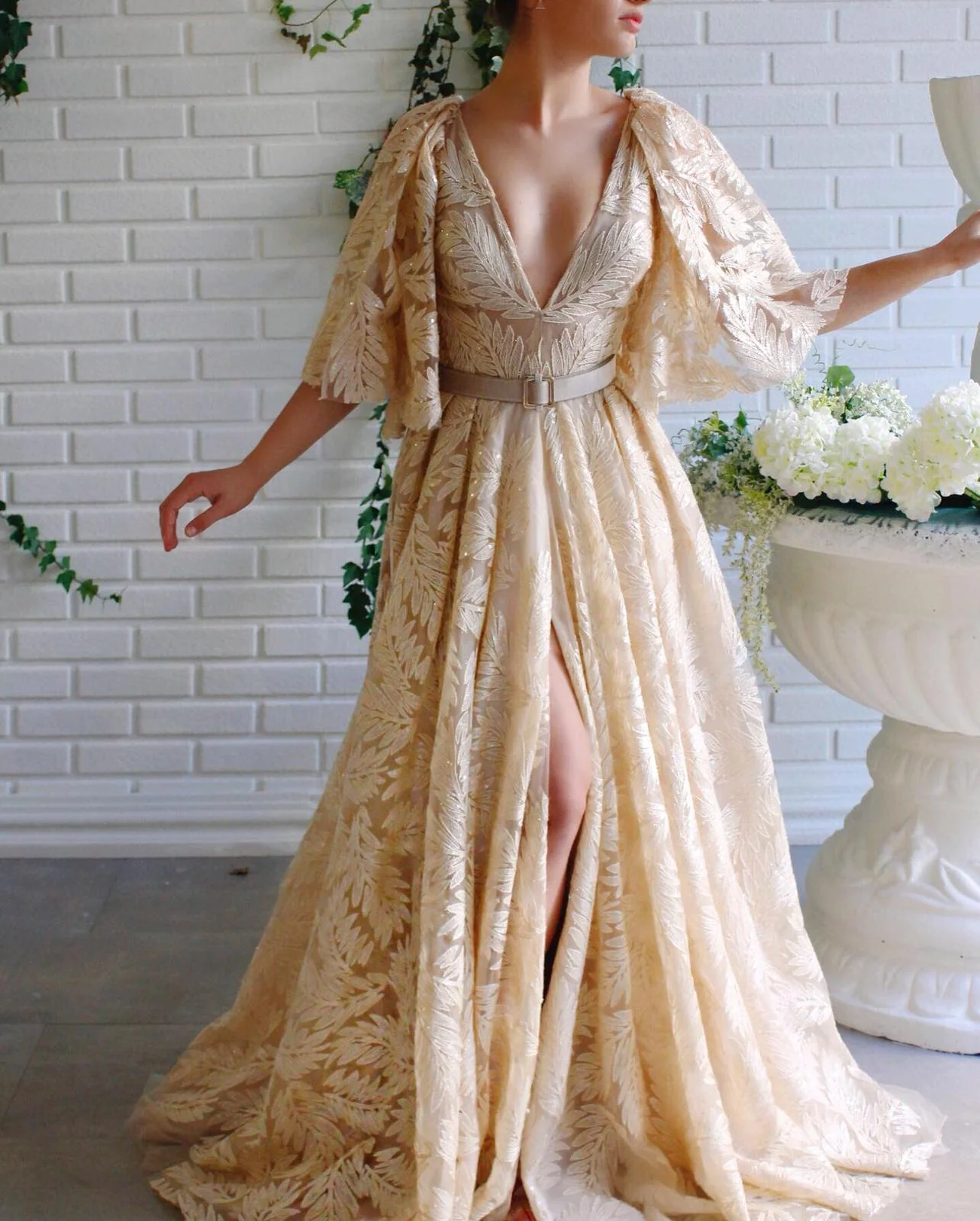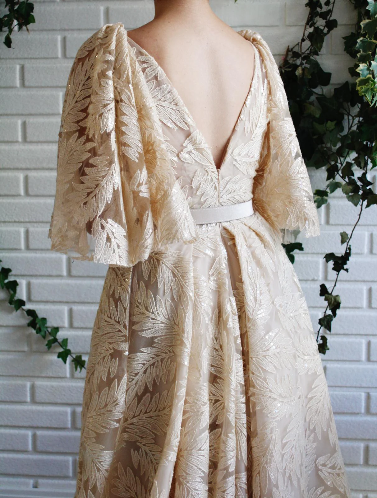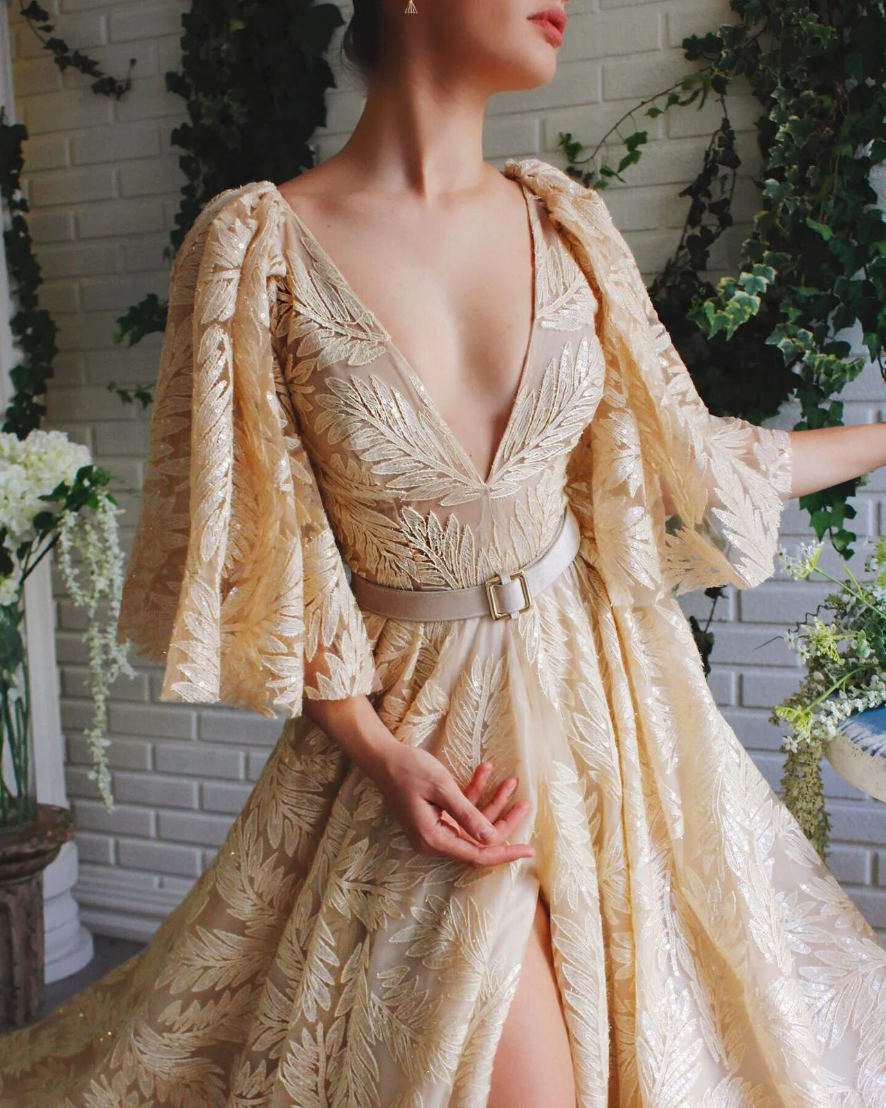 - V-neck with puffy shoulder, an open leg and a velvet belt detail