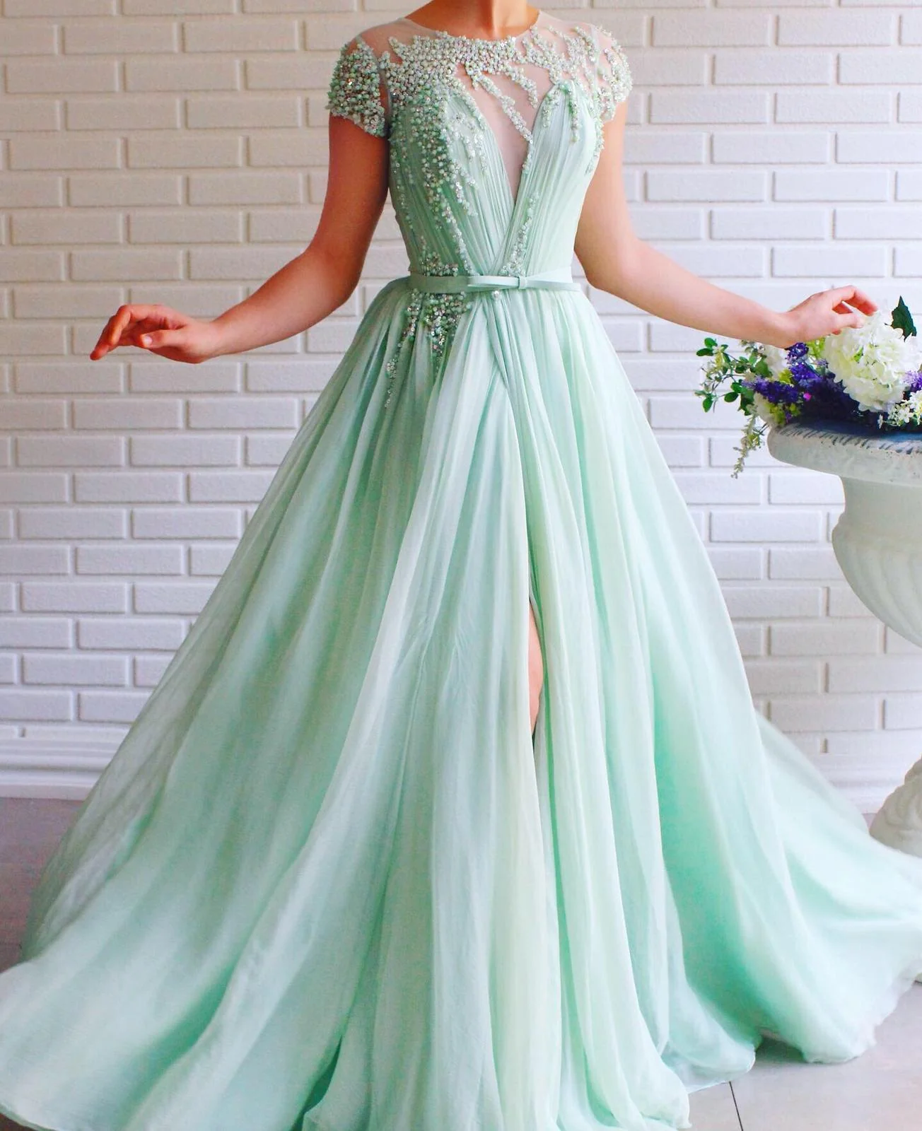 Dreamy Mint Beaded Gown