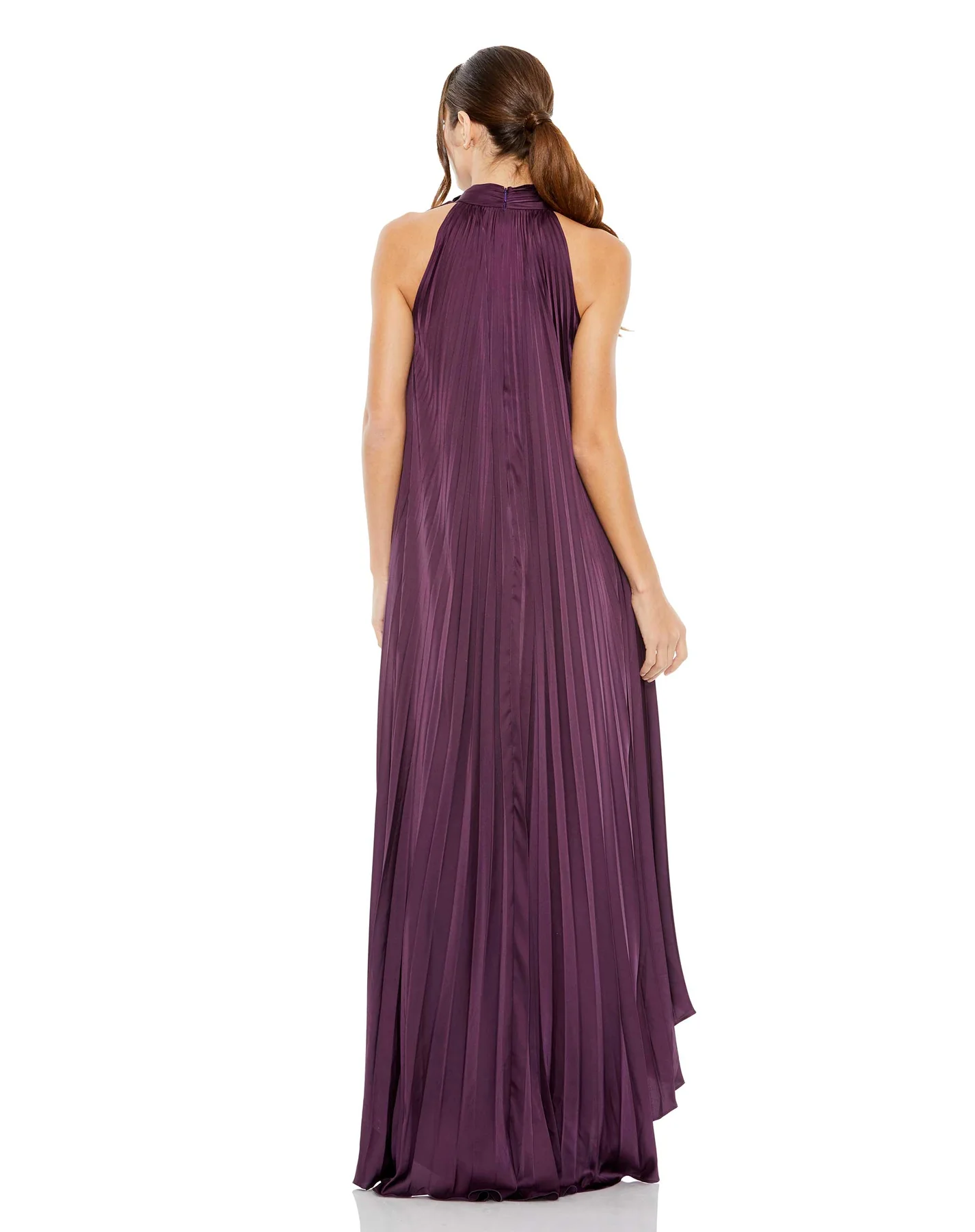 PLEATED HALTER NECK HIGH LOW GOWN