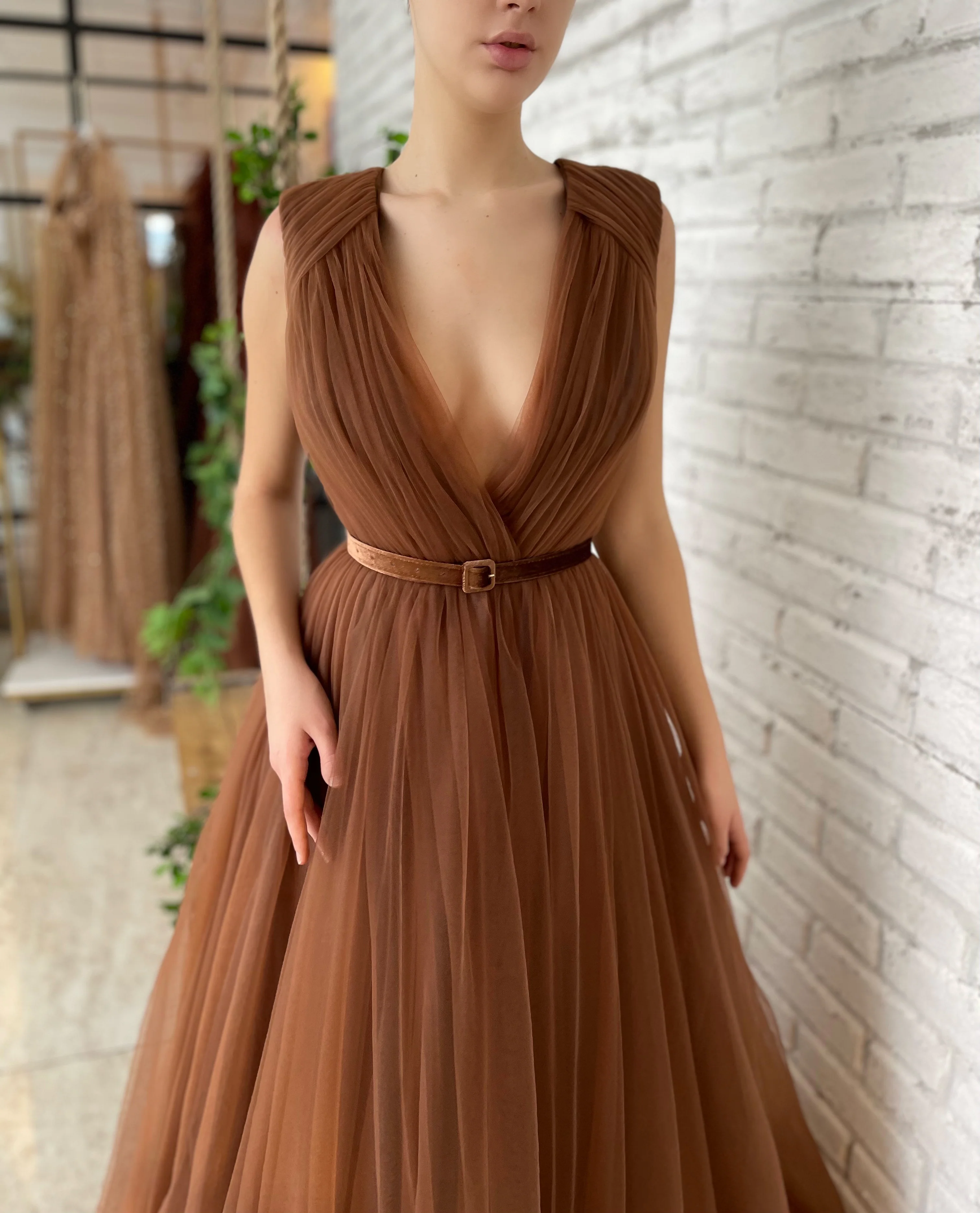 Mocha Pleated Gown