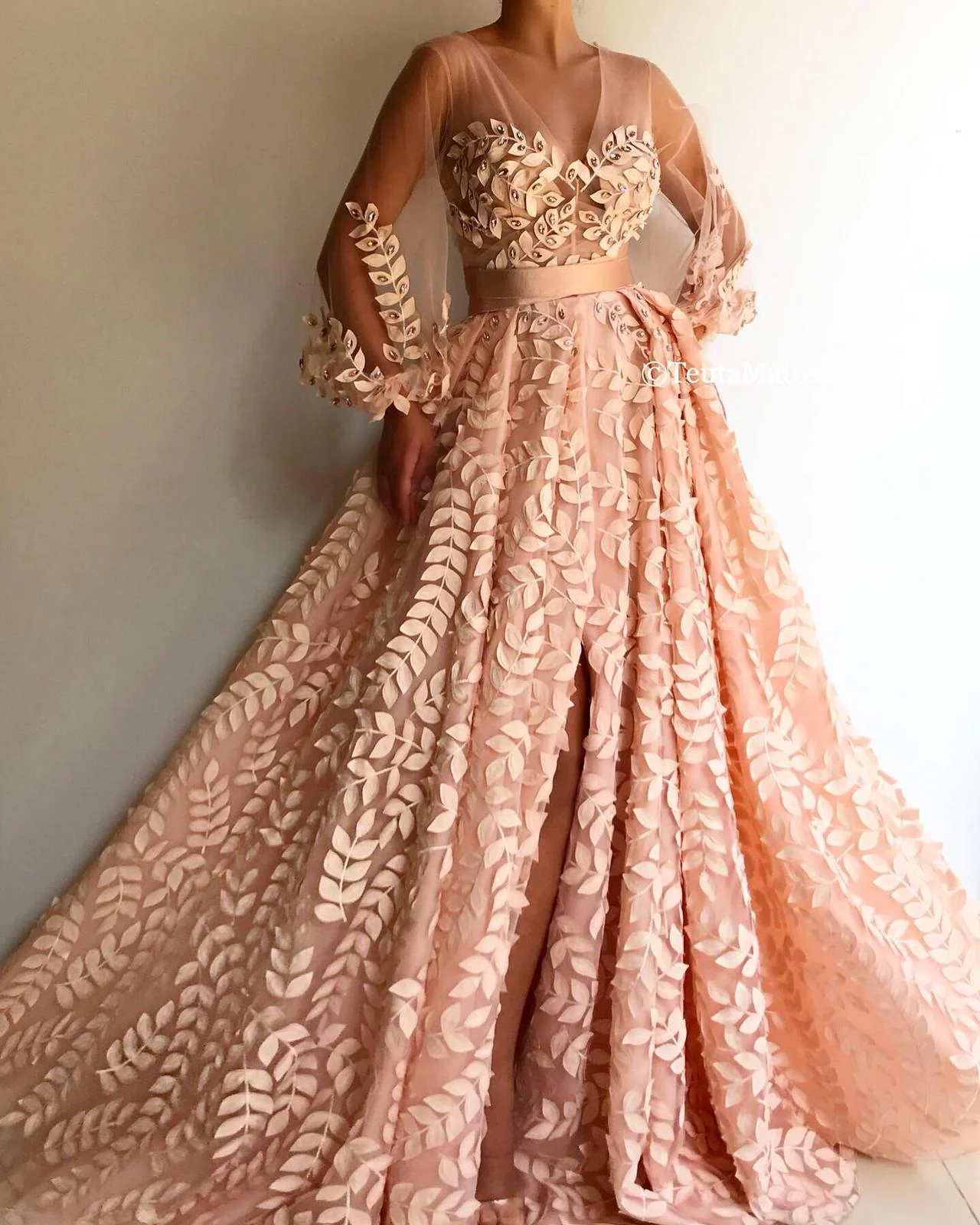 Crystal Leaves and Sleeves Gown