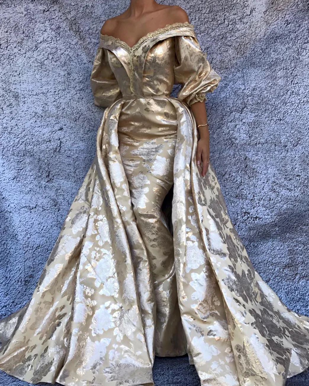 Indigo Off-Shoulder Gown