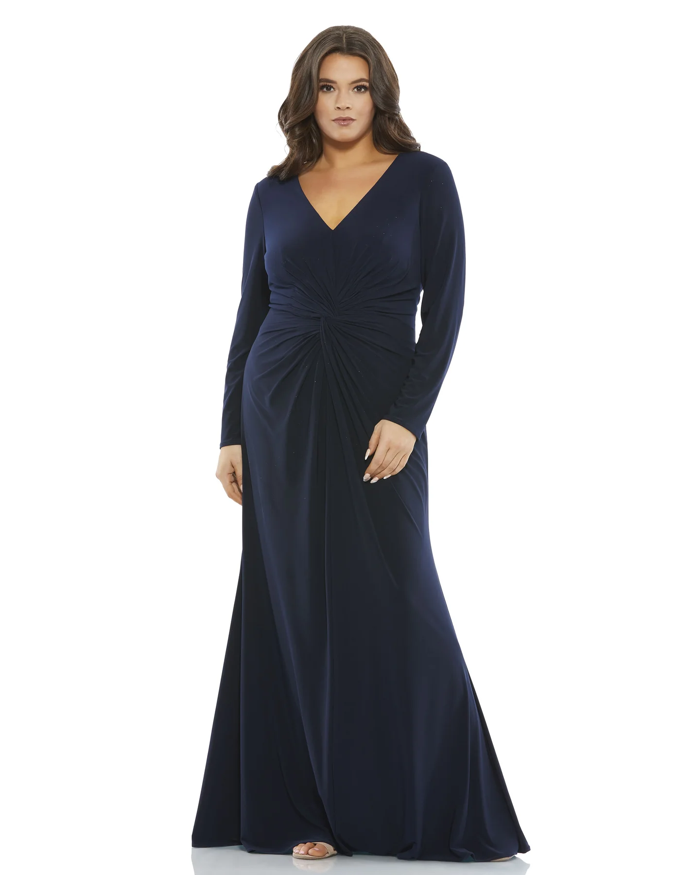FRONT TWIST LONG SLEEVE V-NECK GOWN (PLUS)