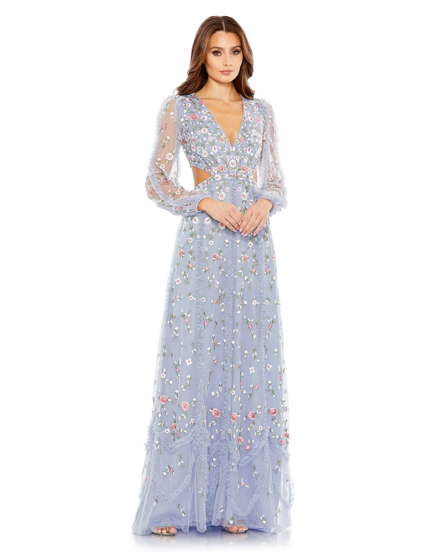 LONG SLEEVE EMBELLISHED CUT OUT A-LINE GOWN