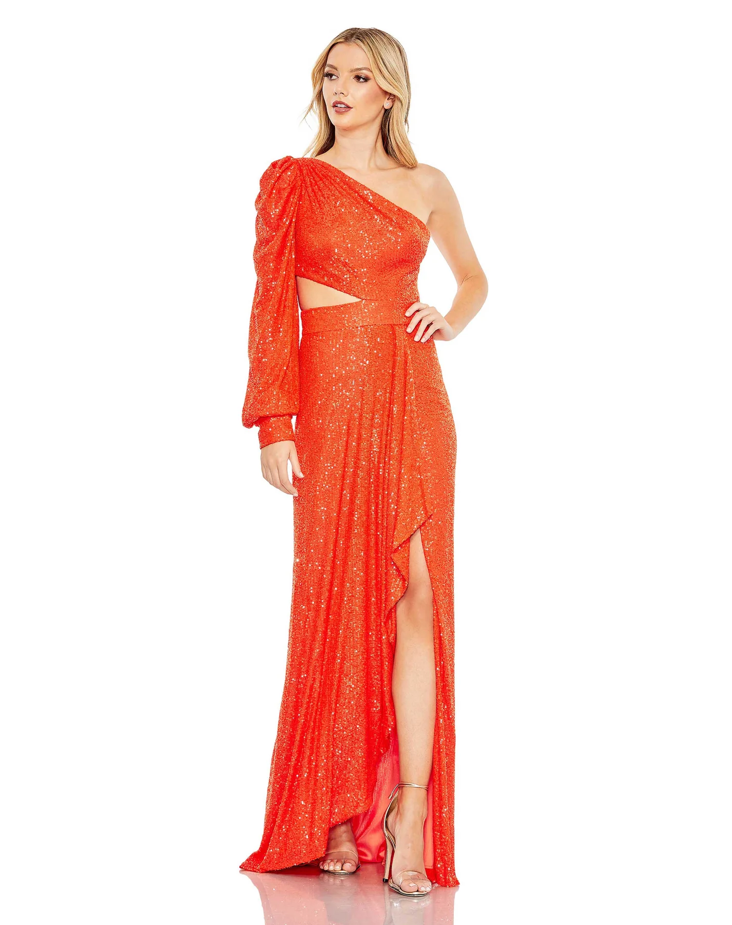 SEQUINED ONE SHOULDER CUT OUT GOWN