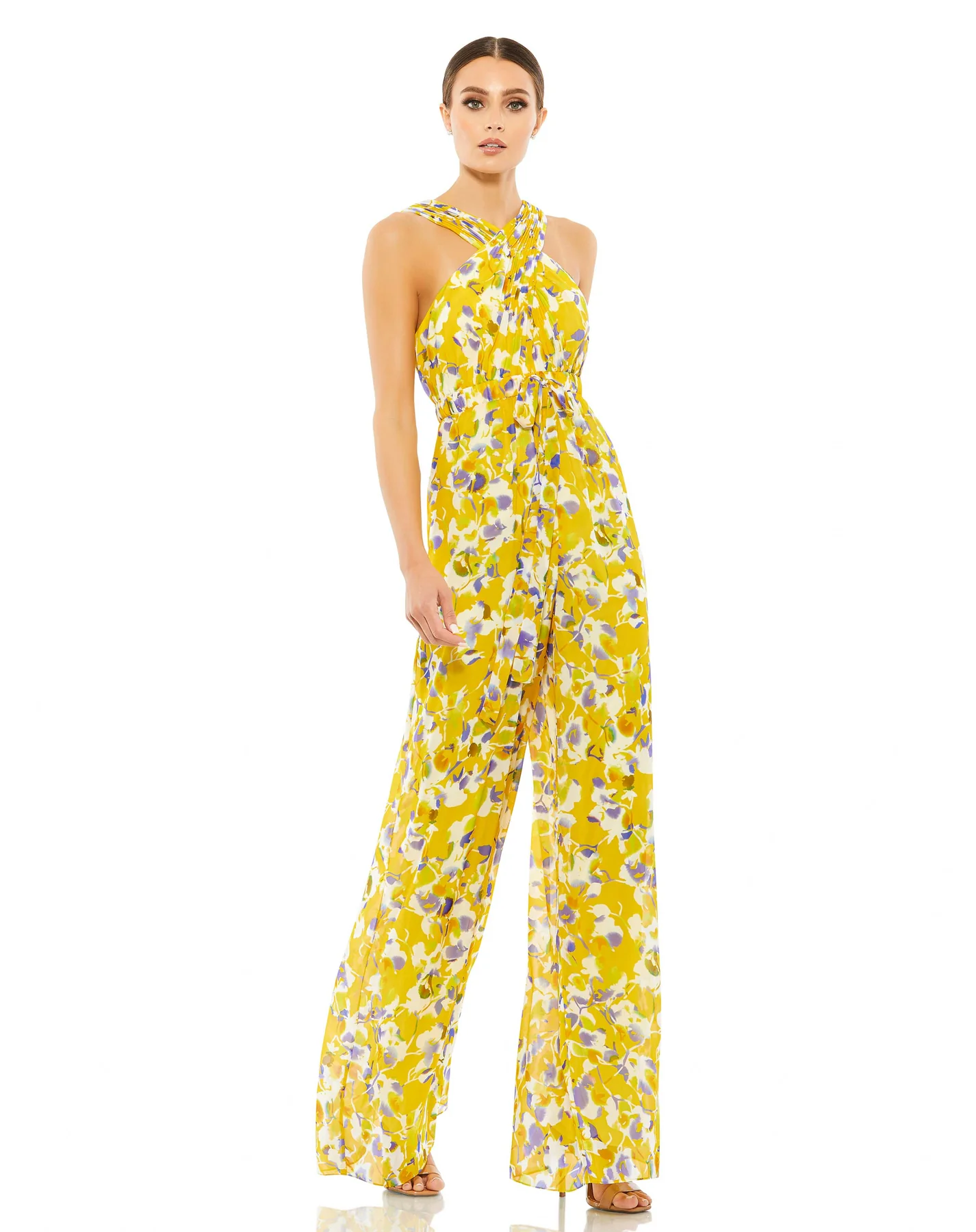 CROSSED HALTER TIE WAIST JUMPSUIT