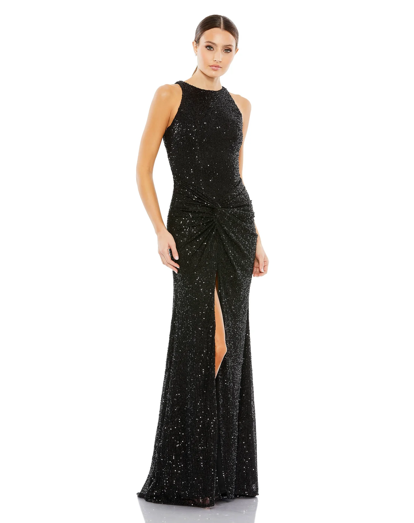 SEQUINED HIGH NECK SIDE KNOT GOWN