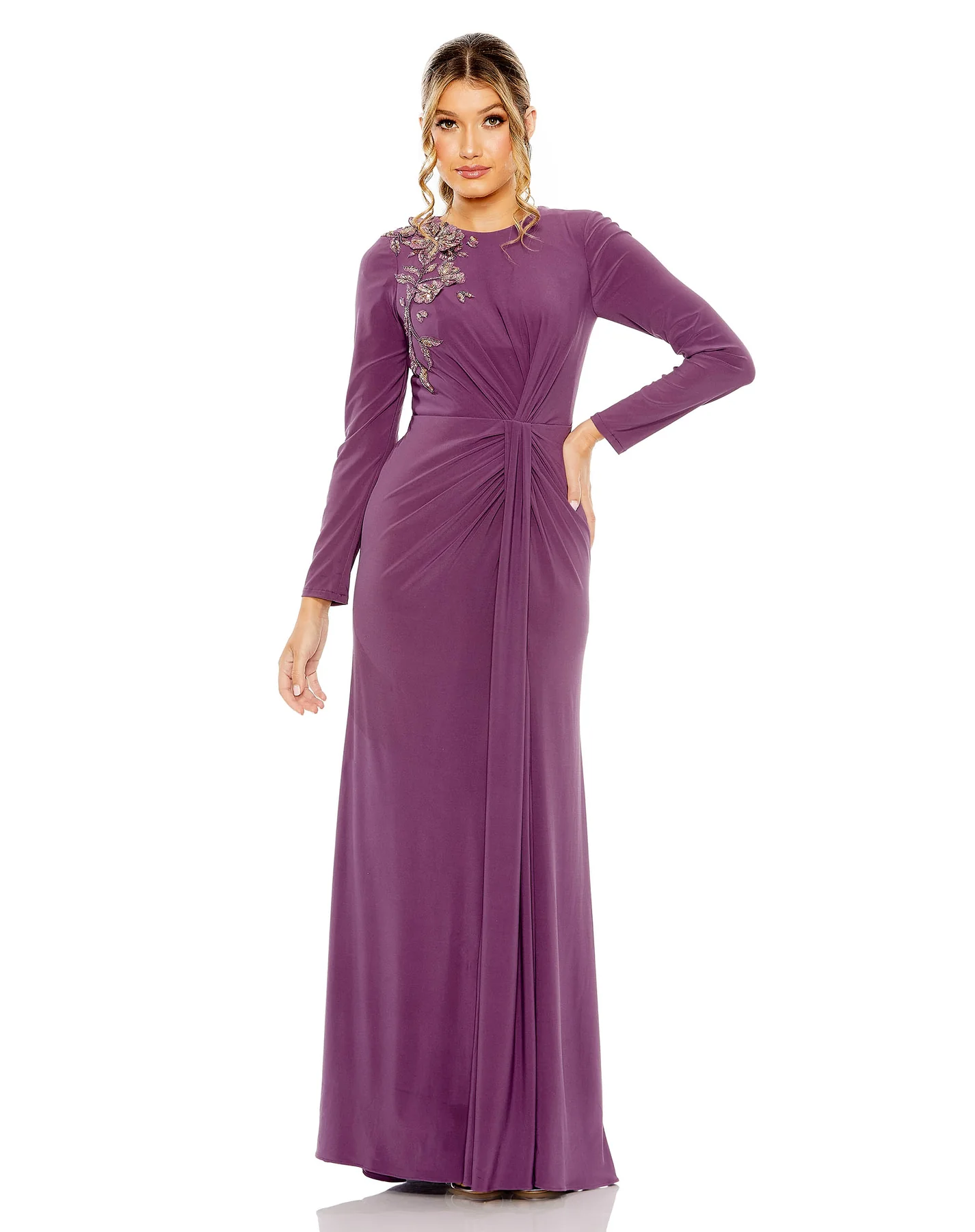 JERSEY HIGH NECK LONG SLEEVE EMBELLISHED GOWN