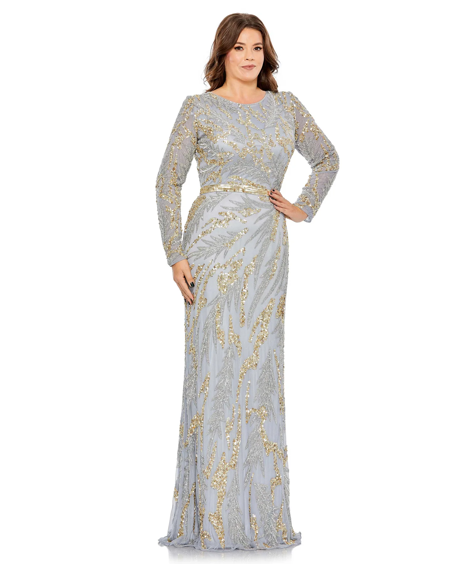 LONG SLEEVE HIGH NECKLINE EMBELLISHED GOWN